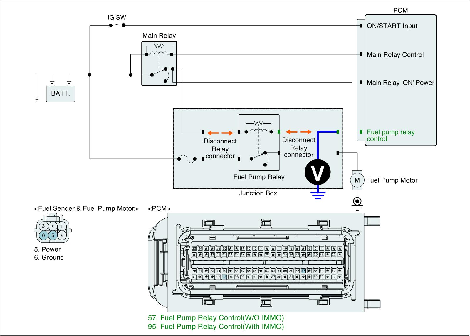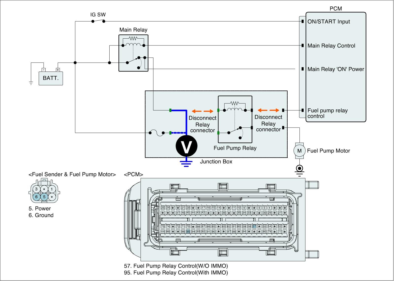 1. IG "OFF" and disconnect fuel pump relay connector.