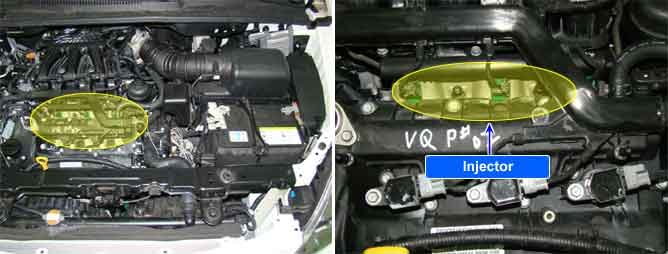 Based on information from various sensors, the PCM measures the fuel injection amount. The fuel injector is a solenoid-operated valve and the fuel injection amount is controlled by length of time the fuel injector is held open. The PCM controls each injector by grounding the control circuit. When the PCM energizes the injector by grounding the control circuit, the circuit voltage should be low (theoretically 0 V) and the fuel is injected. When the PCM de-energizes the injector by opening the control circuit, the fuel injector is closed and circuit voltage should momentarily peak.