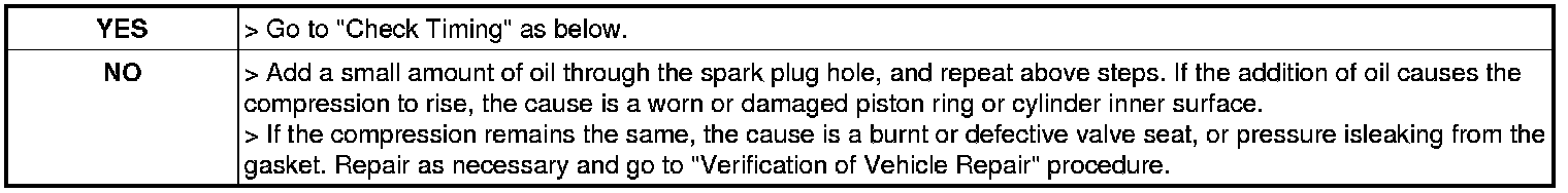 5. Crank the engine with widely opened throttle valve and check compression pressure at each cylinder.