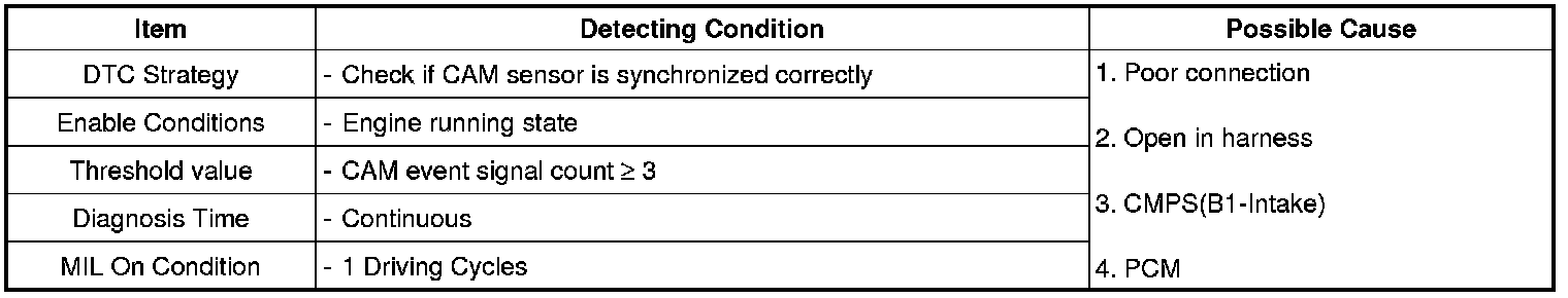 If PCM detects that cam event signal count is over 3 under detecting condition, PCM sets P0340.