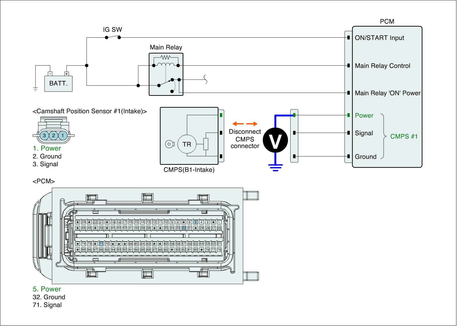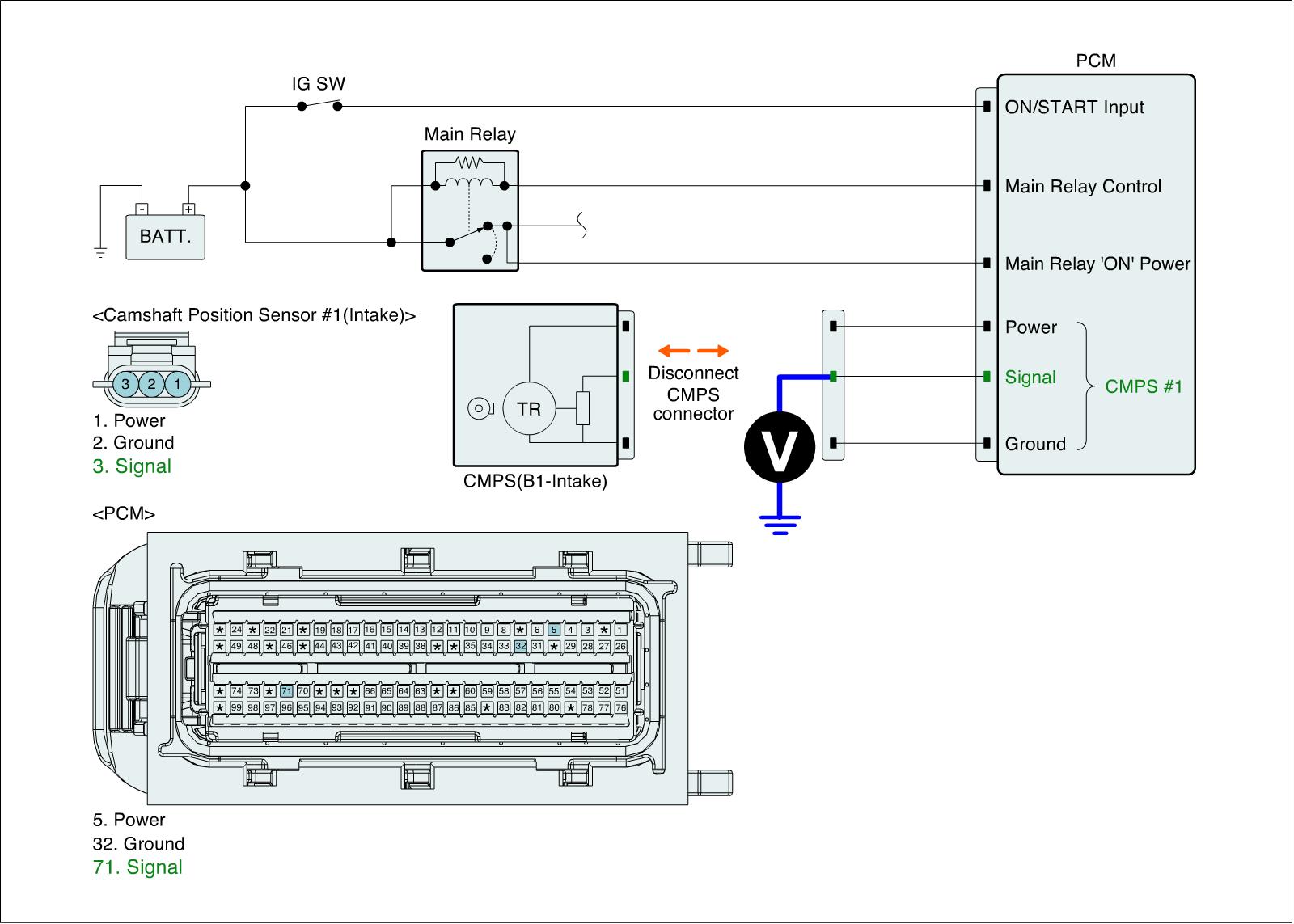 1. IG "OFF" and disconnect CMPS (B1-Intake) connector and then IG "ON".