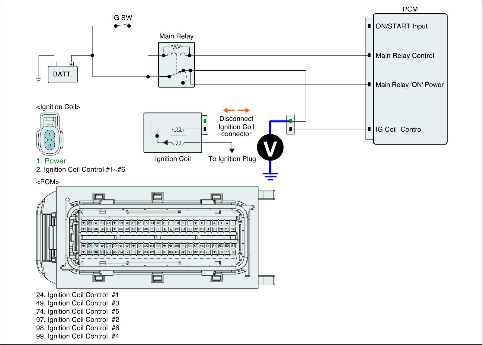 1. IG "OFF" and disconnect ignition coil connector and PCM connector.