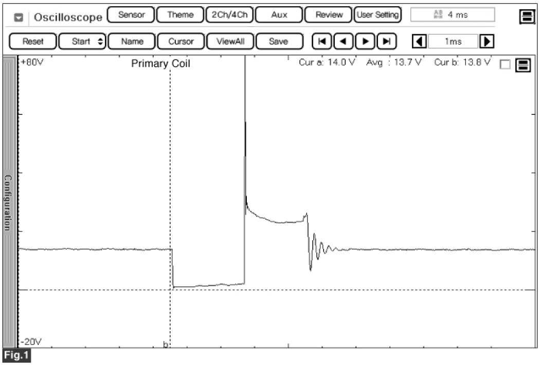 Fig.1) Normal waveforms of primary coil at idle.