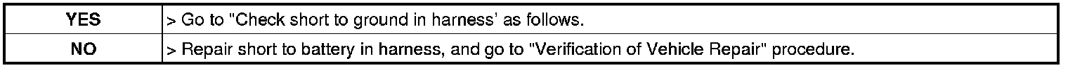 Check short to battery in harness