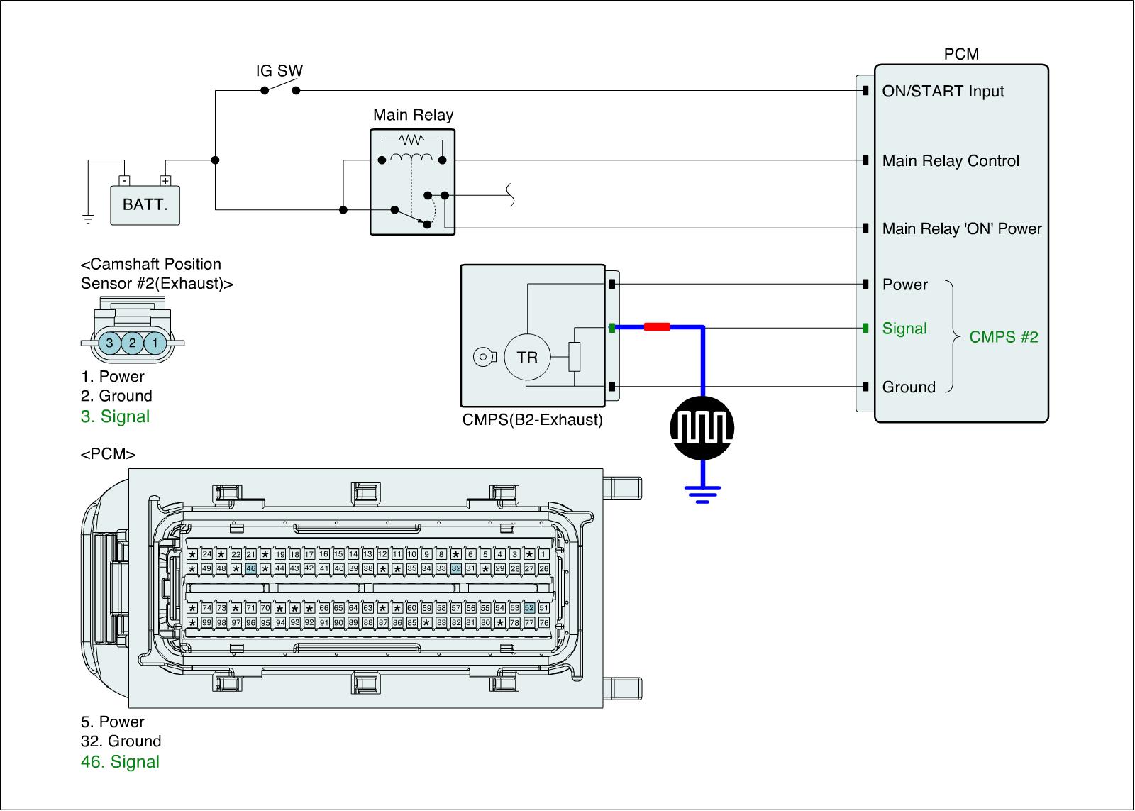 2. ENG "ON" and Measure signal waveform at signal terminal of CMPS.