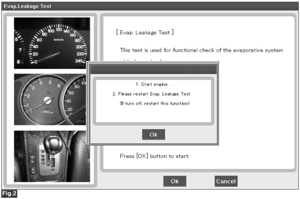 5. Start engine and restart "EVAP Leakage Test". (Fig.2)