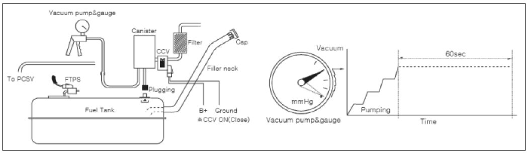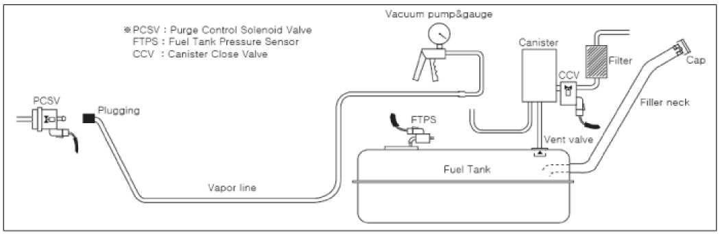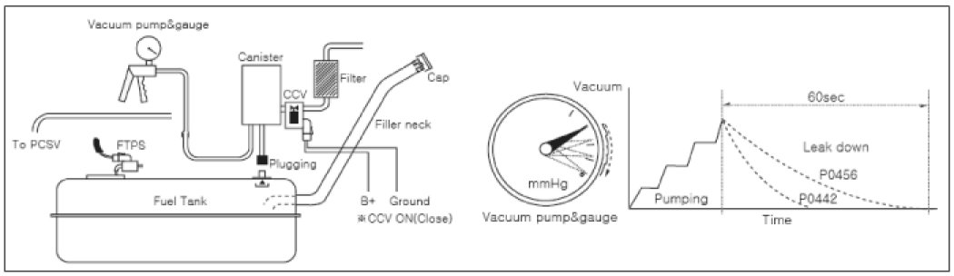 4. Apply vacuum and check for leakage in Canister/CCV/Vapor lines/etc.