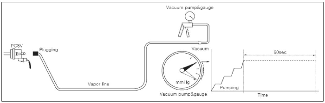 1. Disconnect the vapor line from Purge Control Solenoid Valve (PCSV) on the fuel tank side.