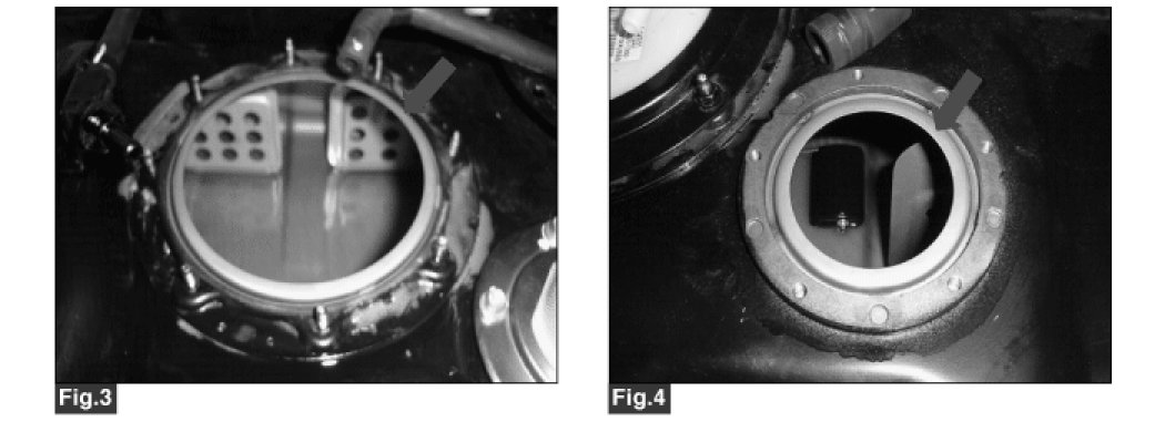 3. Check that the flanges contacting the seals of both the fuel pump and vent valve are not deformed or torn. (Fig 3) & (Fig 4).