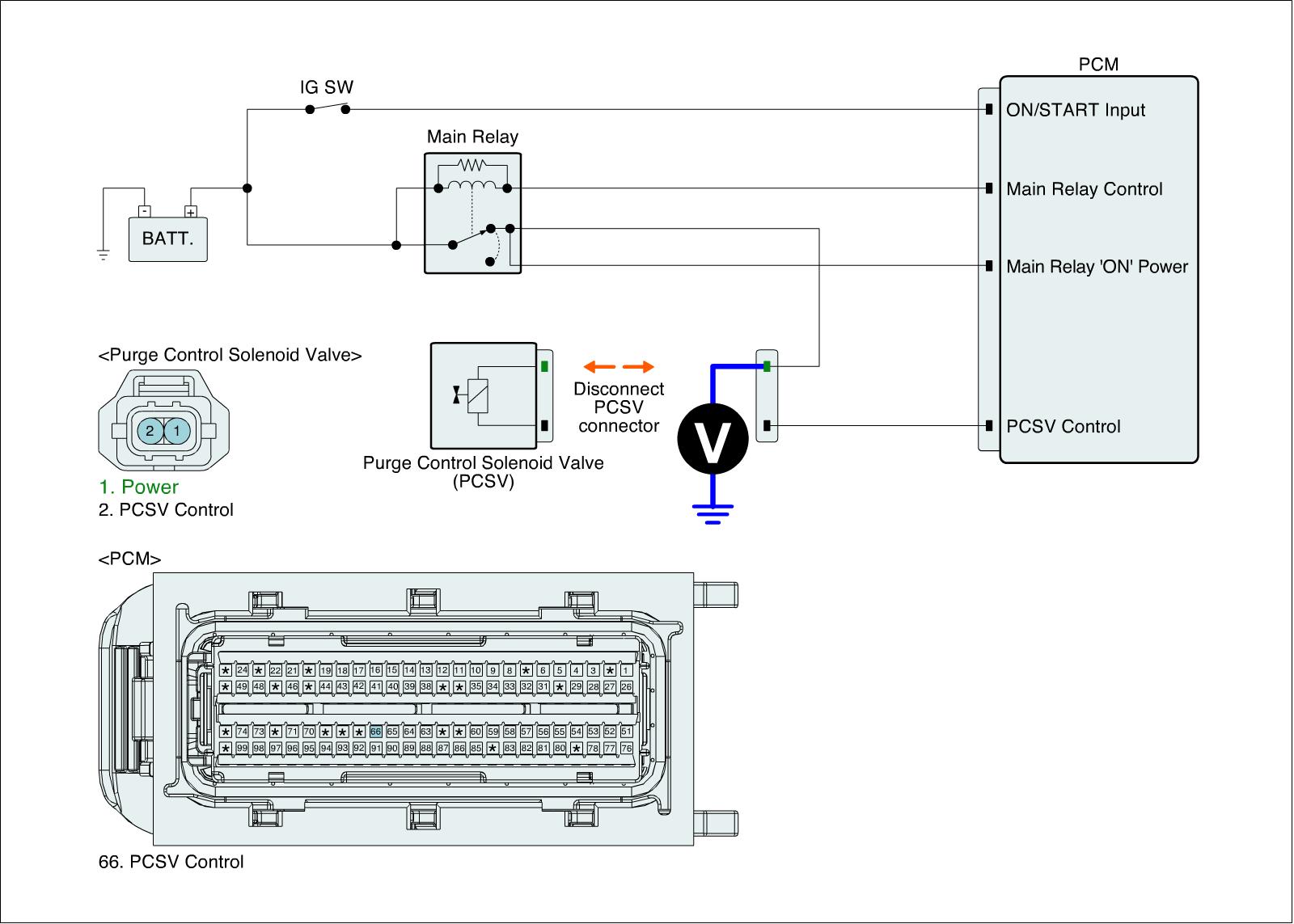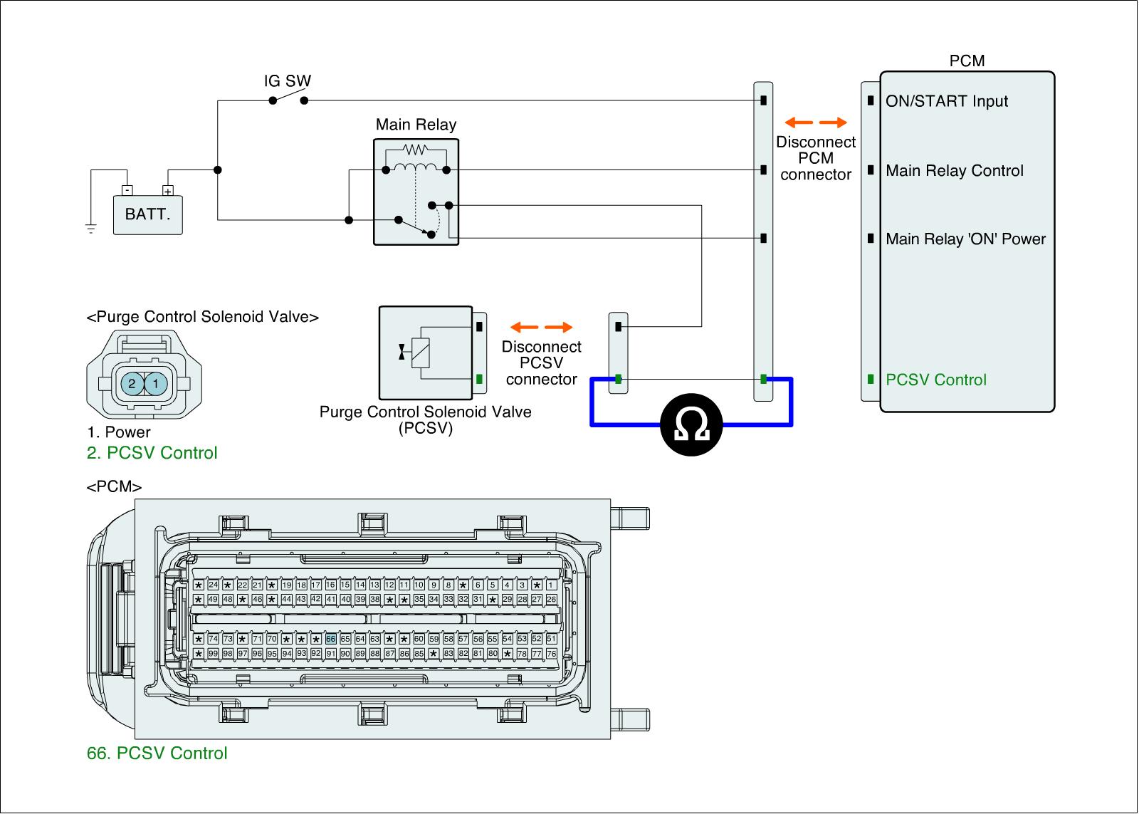 1. IG "OFF" and disconnect PCSV connector and PCM connector.