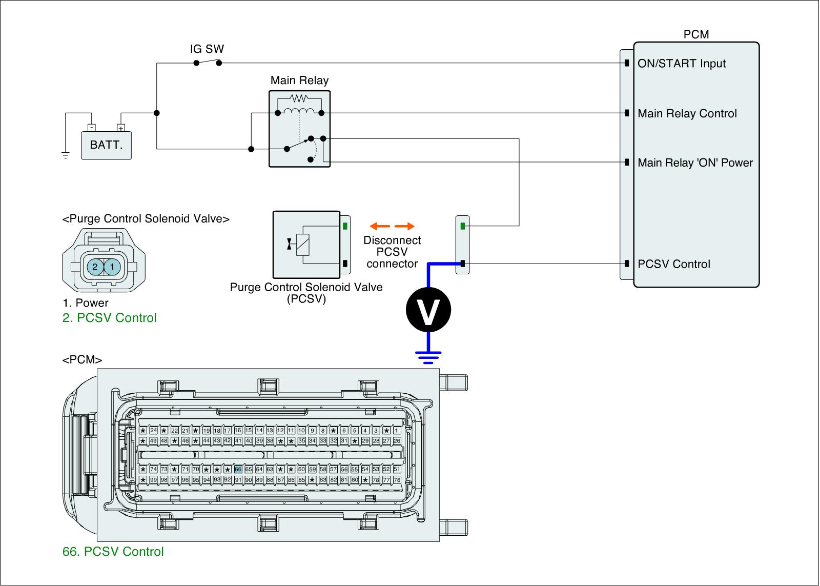 3. Measure voltage between control terminal of PCSV harness connector and chassis ground.