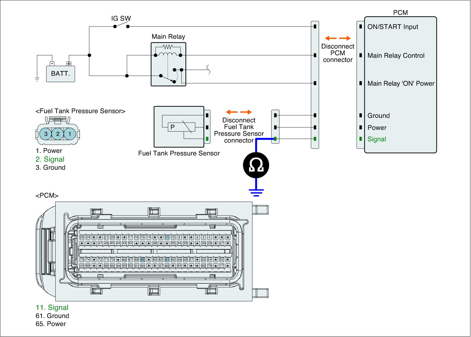 1. IG "OFF" and disconnect FTPS connector and PCM connector.