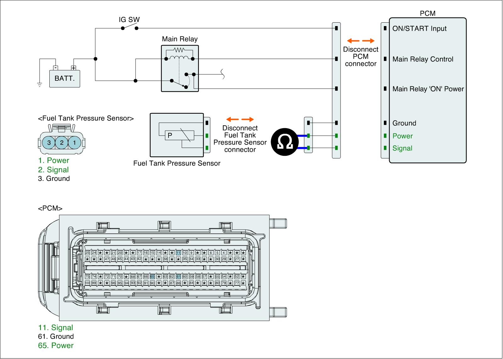 1. IG "OFF" and disconnect FTPS connector and PCM connector.