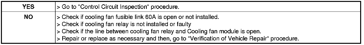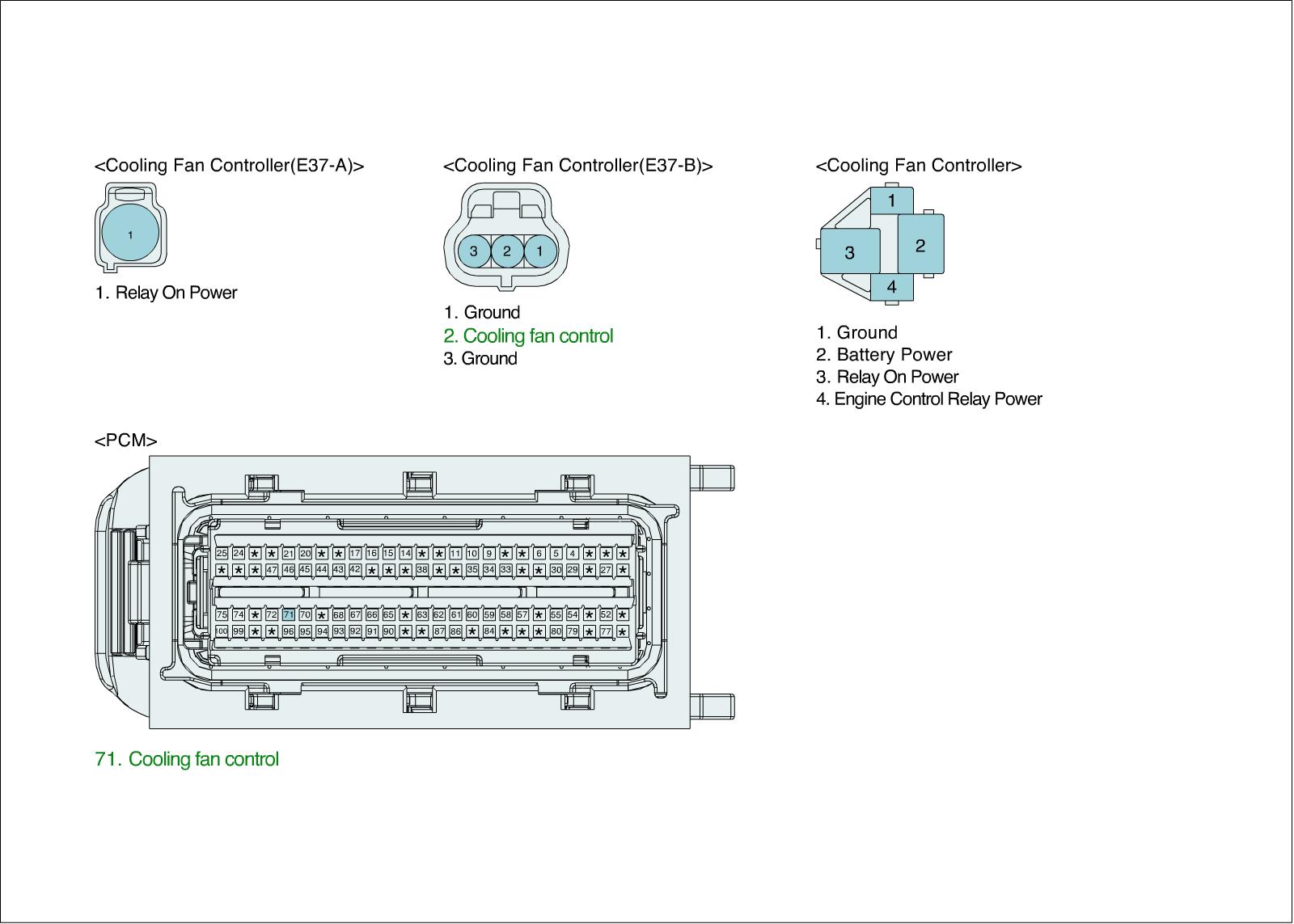 1. IG "OFF" and disconnect Cooling fan module connector.