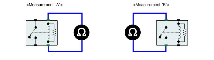 2. Measure the resistance between battery power supply and control terminals of main relay. (Measurement "A")