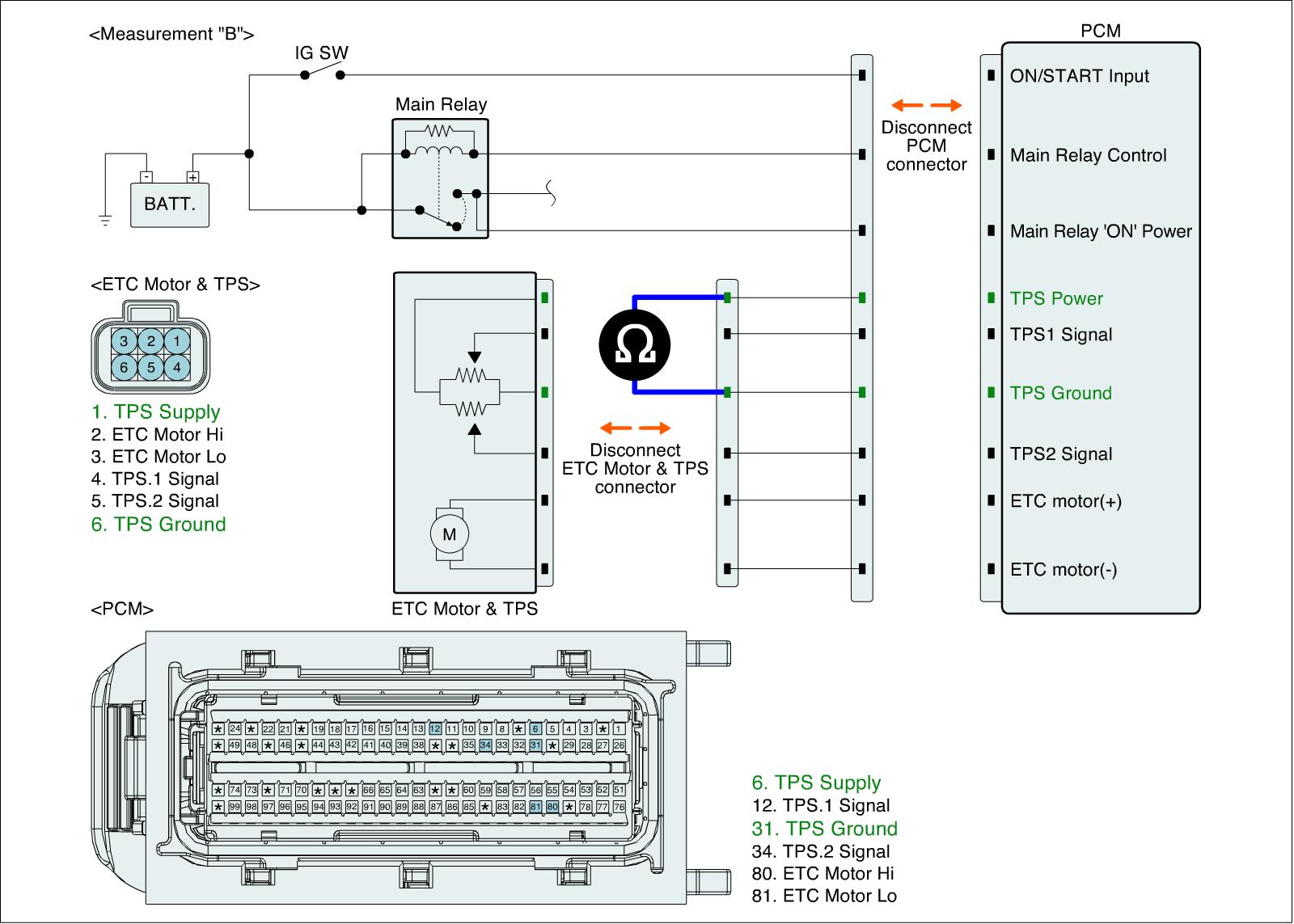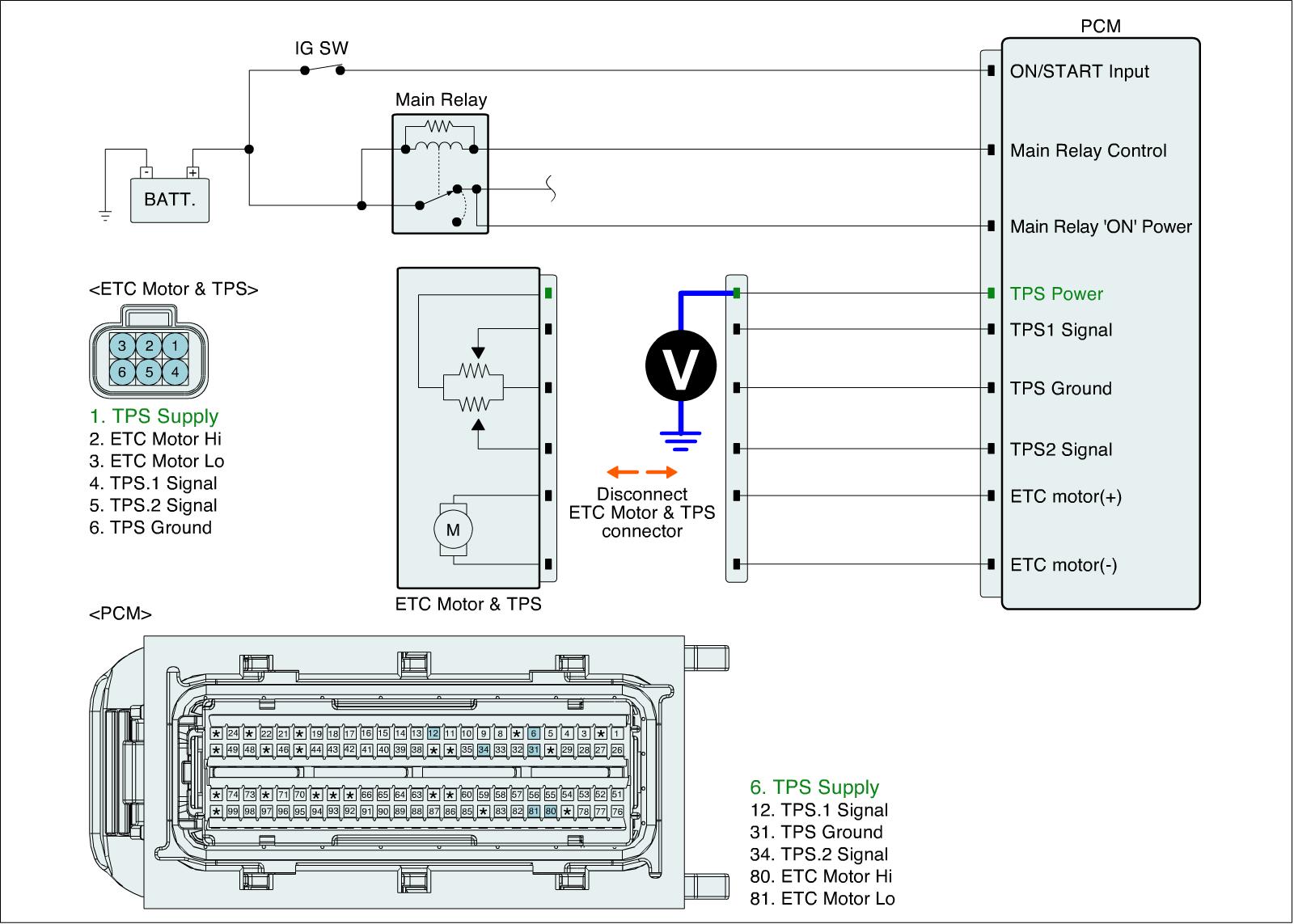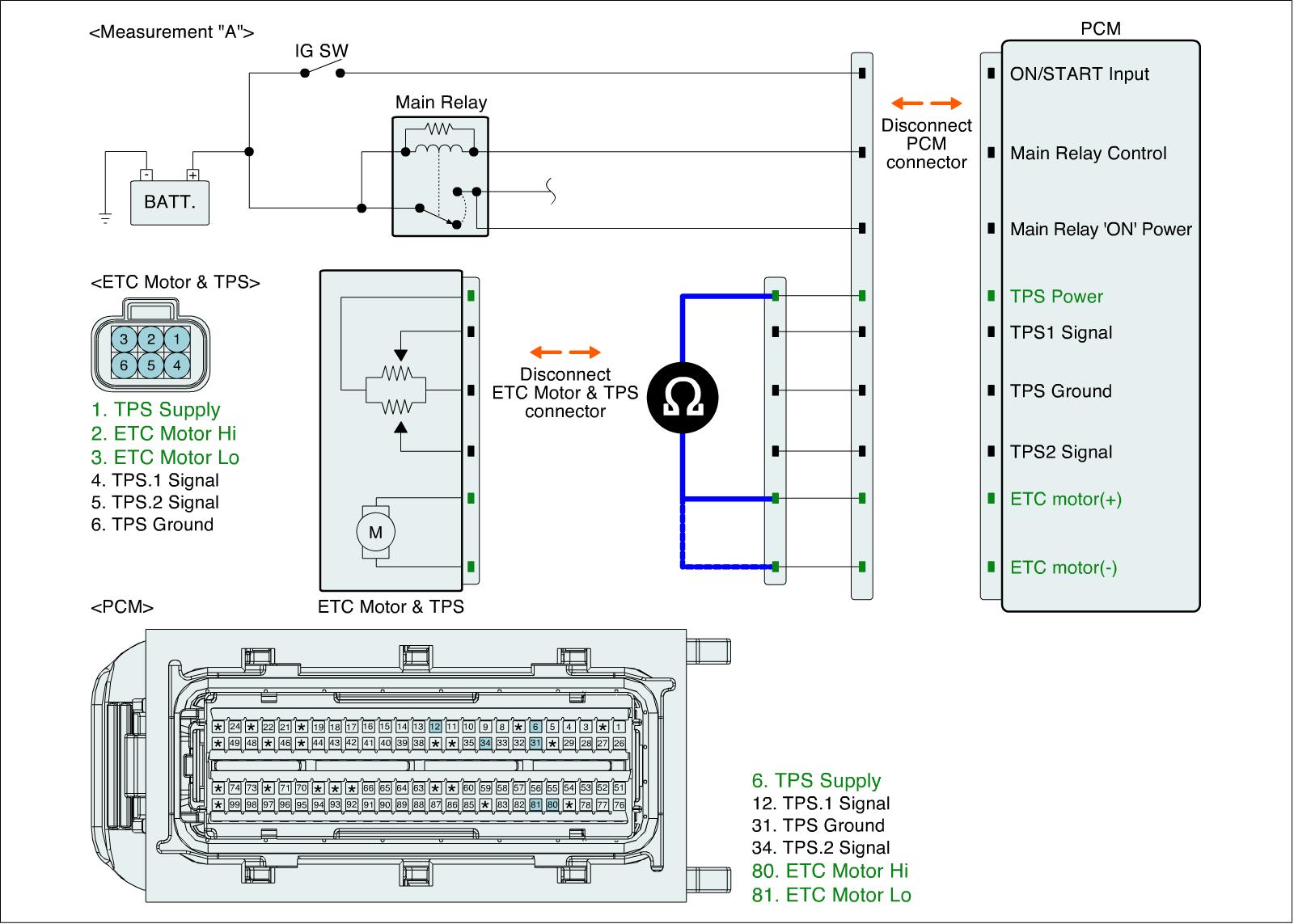 1. IG "OFF" and disconnect ETC Motor & TPS connector and PCM connector.