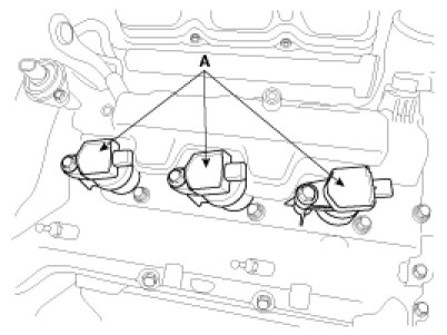 When removing the ignition coil connector, pull the lock pin(A) and push the clip(B).