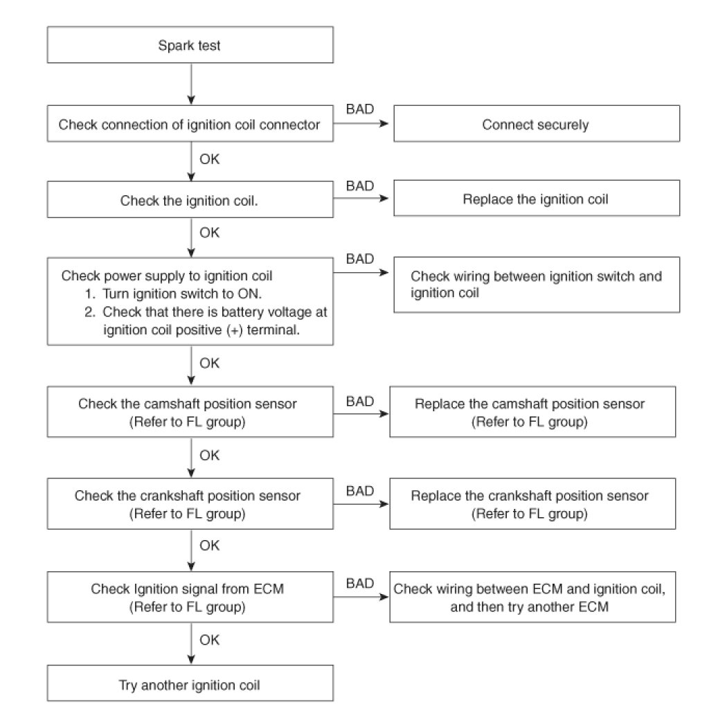 1. Measure the primary coil resistance between terminals (+) and (-).