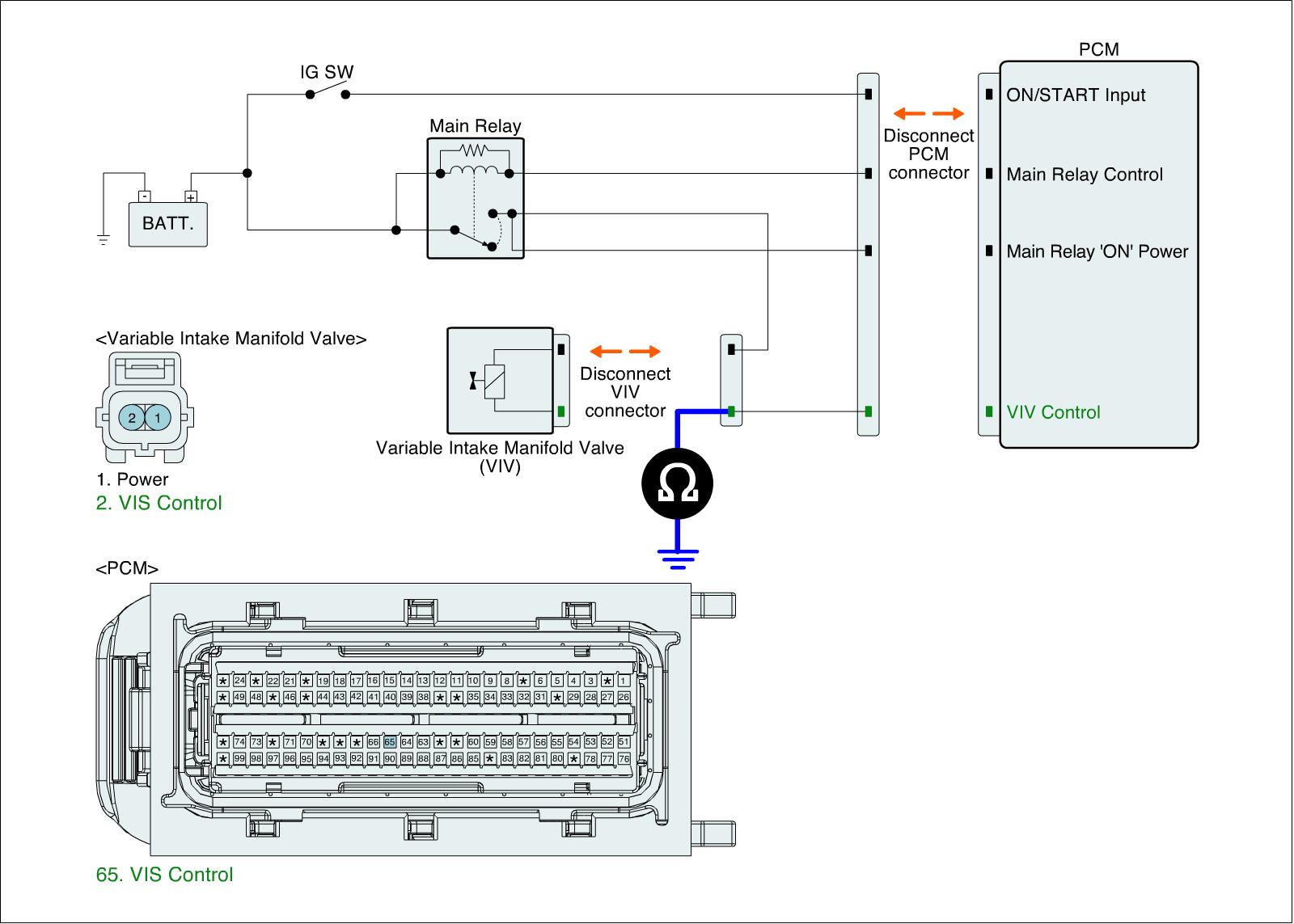 1. IG "OFF" and disconnect VIV connector and PCM connector.