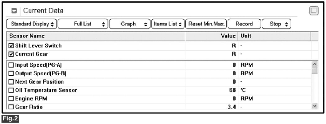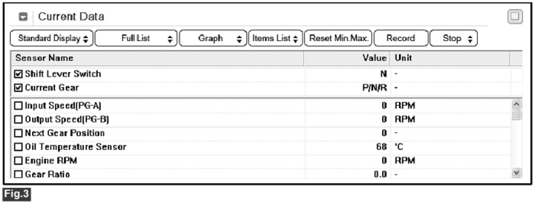 3. Select "Current Data" mode and monitor "Inhibitor switch" parameter.