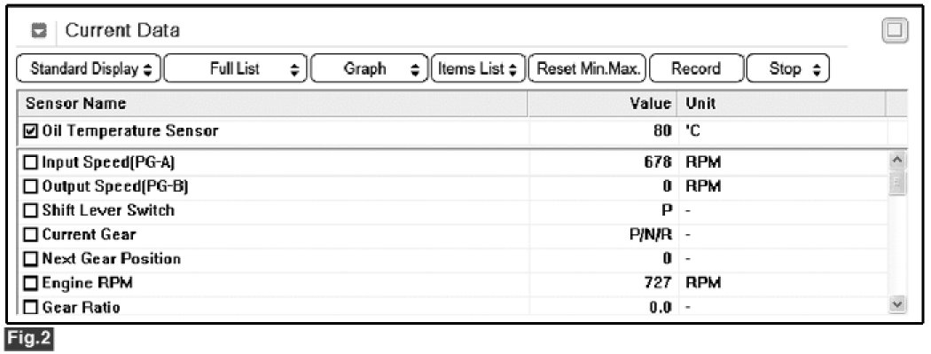 3. Select "Current Data" mode and monitor "Oil temperature sensor" parameter.