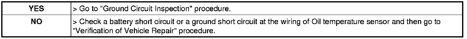 3. Measure a resistance between Ground of Oil temperature sensor and chassis ground.