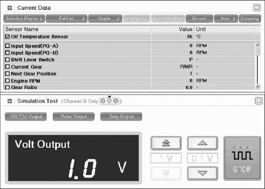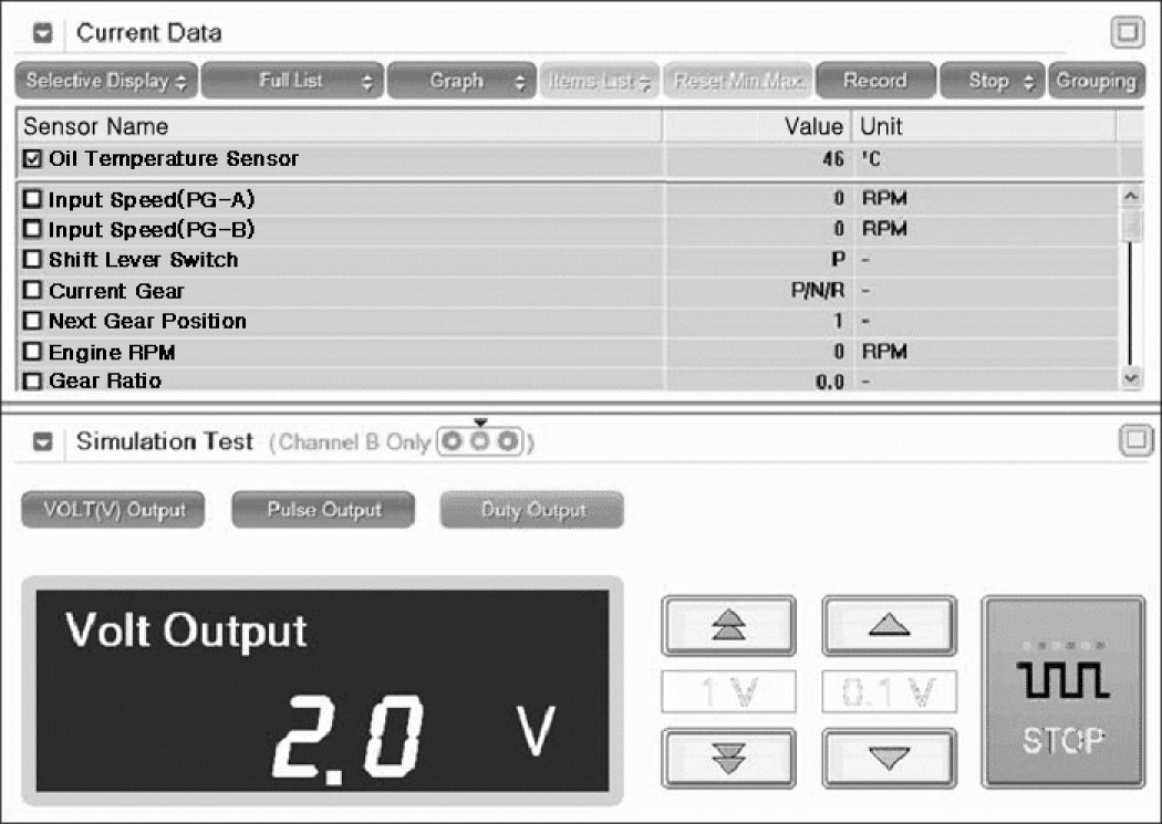 4. Input 0 -> 5 voltage at Oil temperature sensor signal line by simulation mode and Monitoring Oil temperature sensor.