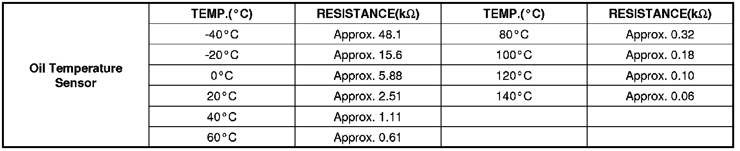 3. Measure a resistance between signal of Oil temperature sensor and chassis ground.