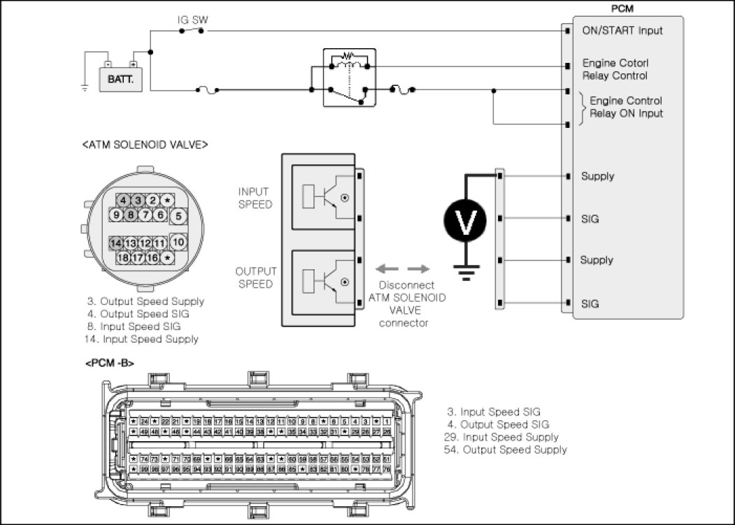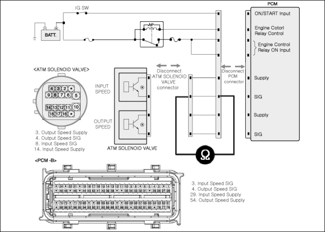 2. Disconnected "ATM solenoid valve connector and PCM/TCM connector.