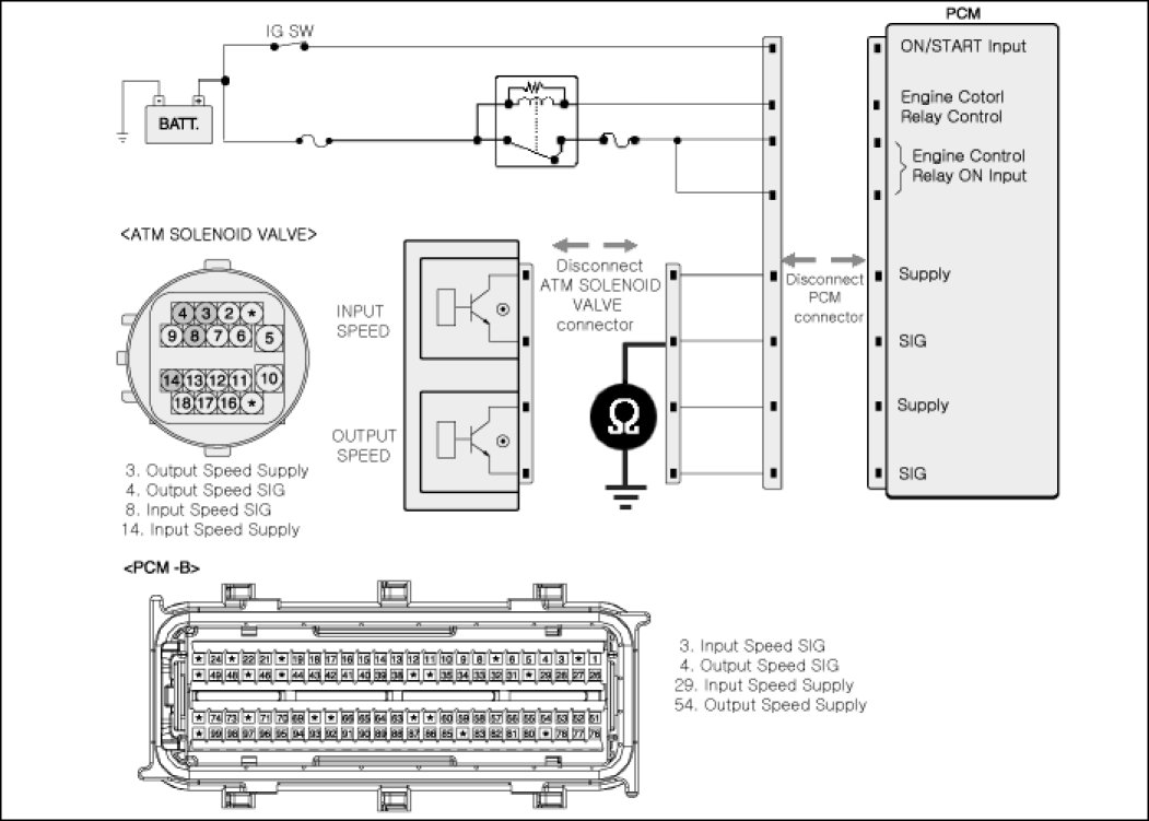 3. Measure resistance between signal of Input speed sensor and PCM TCM connector.