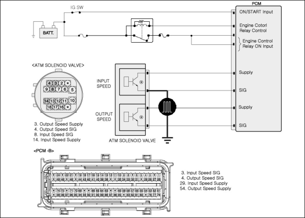 1. Connect "A/T solenoid valve"connector and GDS to Data Link Connector (DLC).