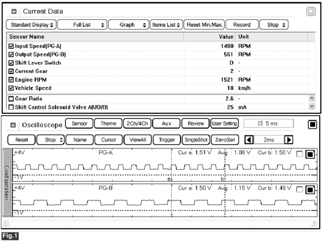 Input speed sensor value must be equal Output speed sensor value times each gear ratio at each gear position of transmission. That operation value equal with TCM operation value. For example Output speed sensor value is 1000 RPM and 2nd speed gear ratio is 2.6 then Input speed sensor value must be 2600 RPM.