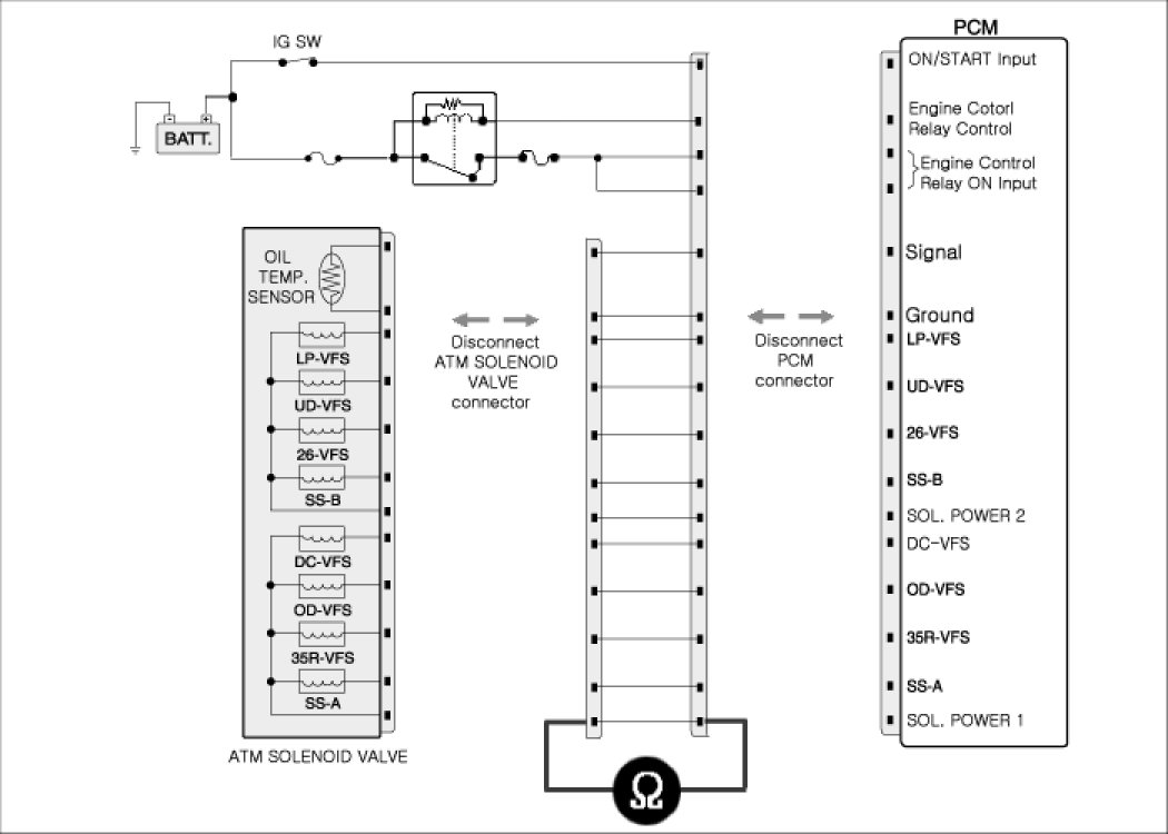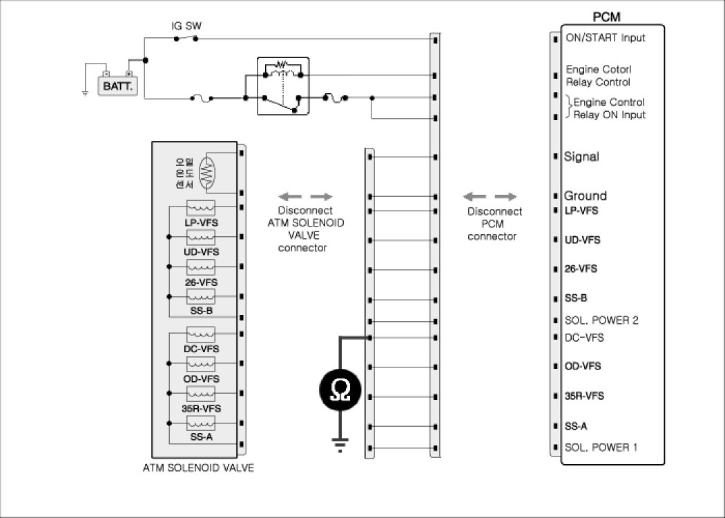 2. Disconnected "ATM solenoid valve connector and PCM/TCM connector.