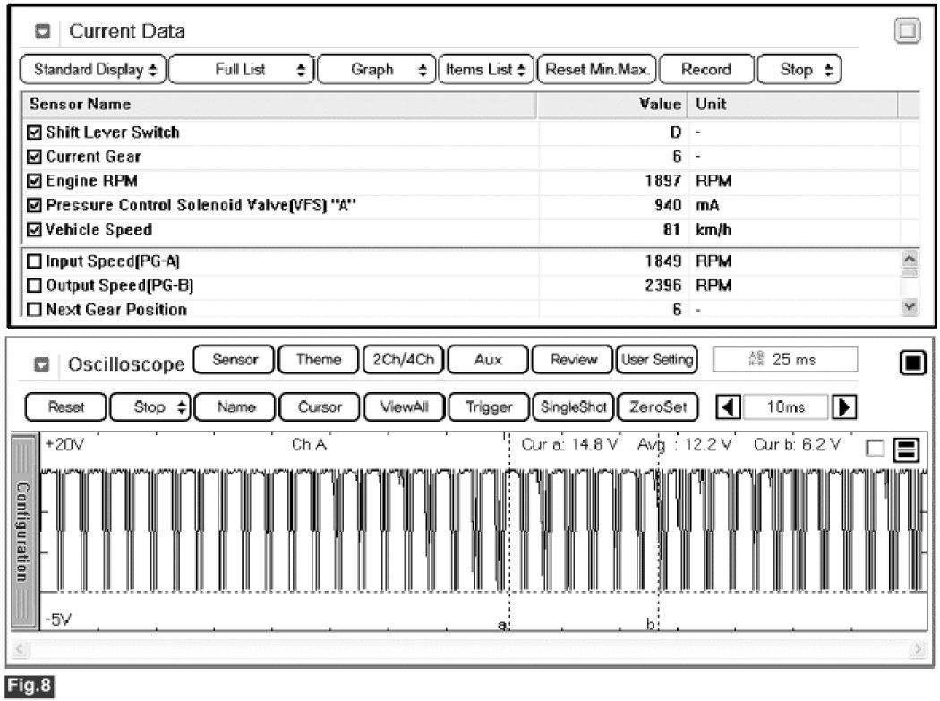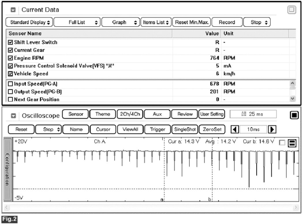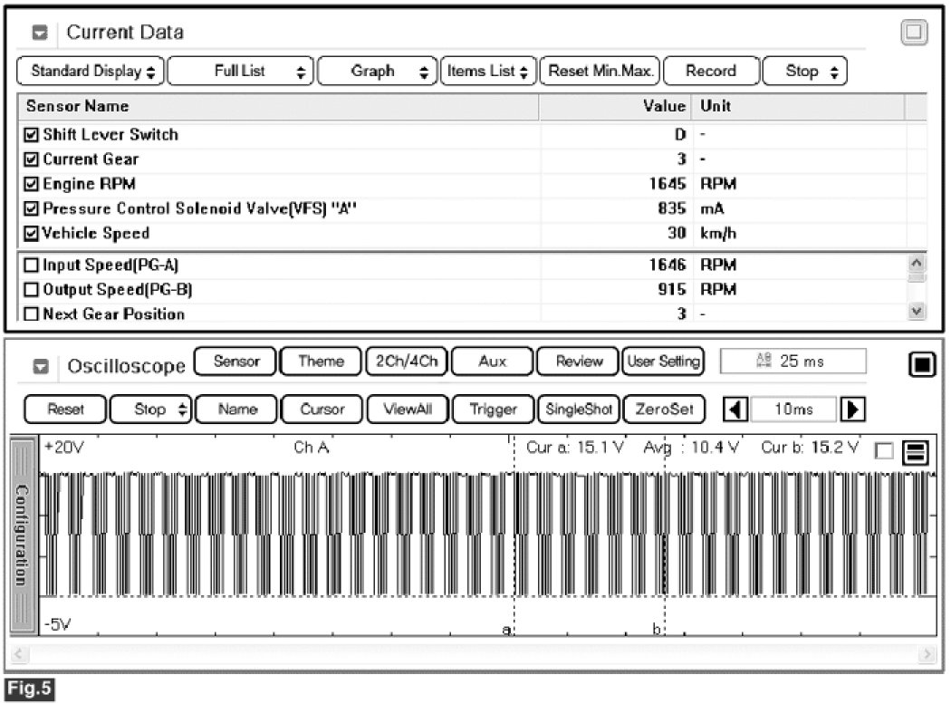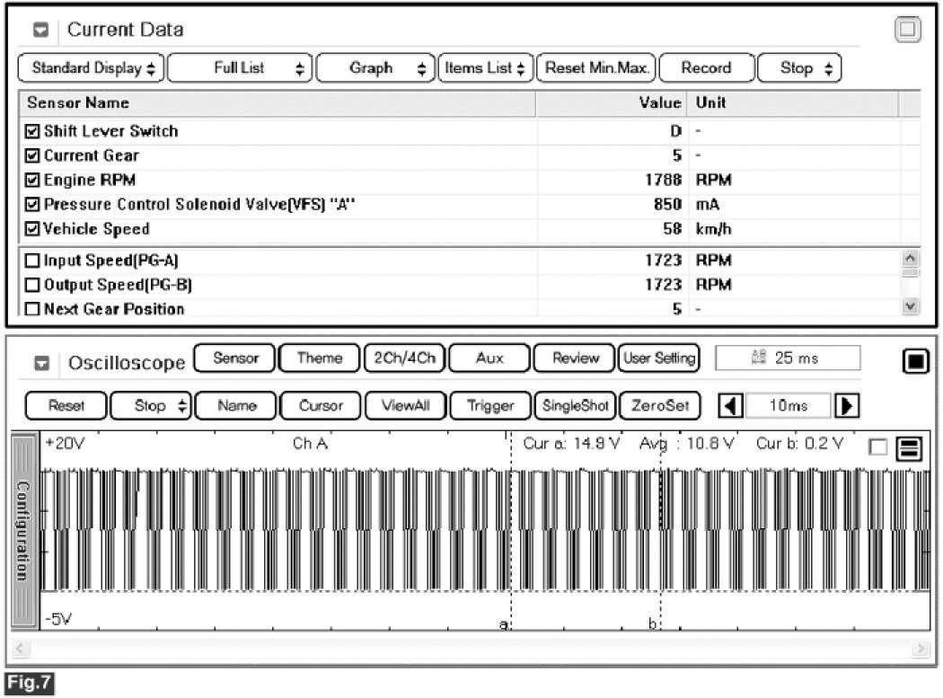 4. Select "Current Data" mode and monitor "Pressure Control Solenoid Valve" parameter.