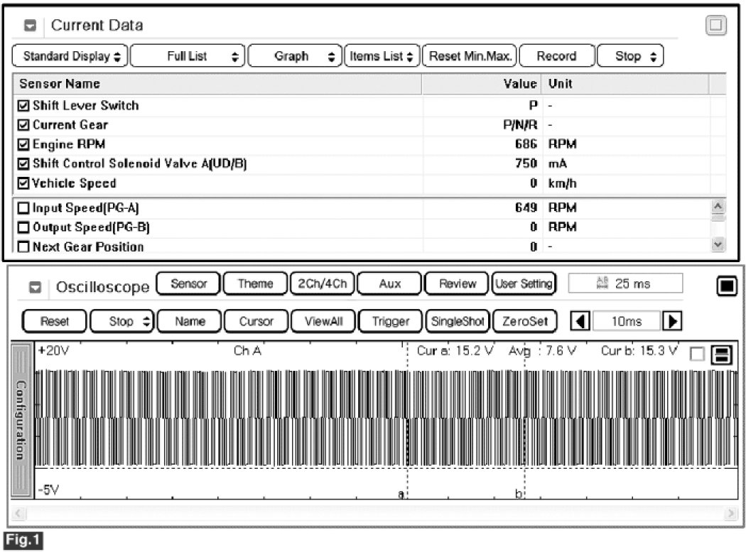 4. Select "Current Data" mode and monitor "Shift Control Solenoid Valve (UD-VFS)" parameter current value.