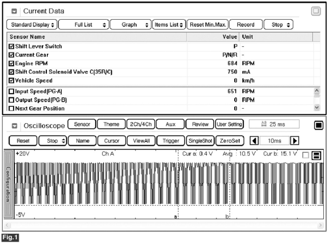 4. Select "Current Data" mode and monitor "Shift Control Solenoid Valve (35R/C-VFS)" parameter current value.
