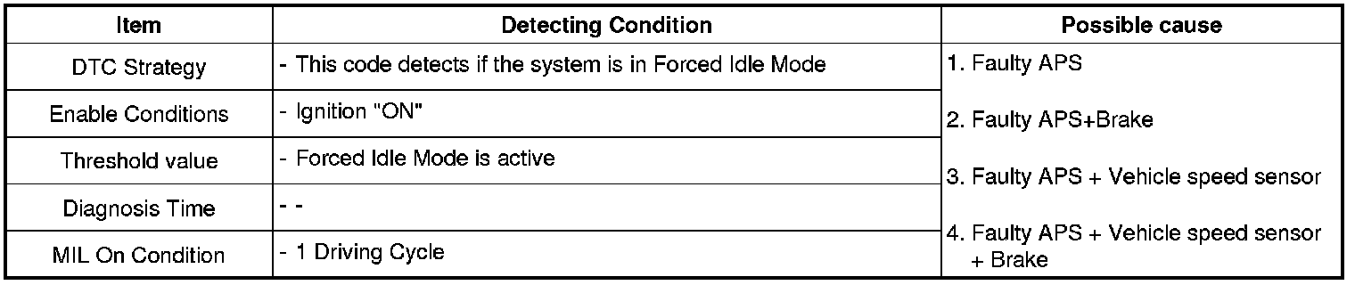 If PCM recognizes vehicle state as forced idle under detecting condition, it sets P2104.