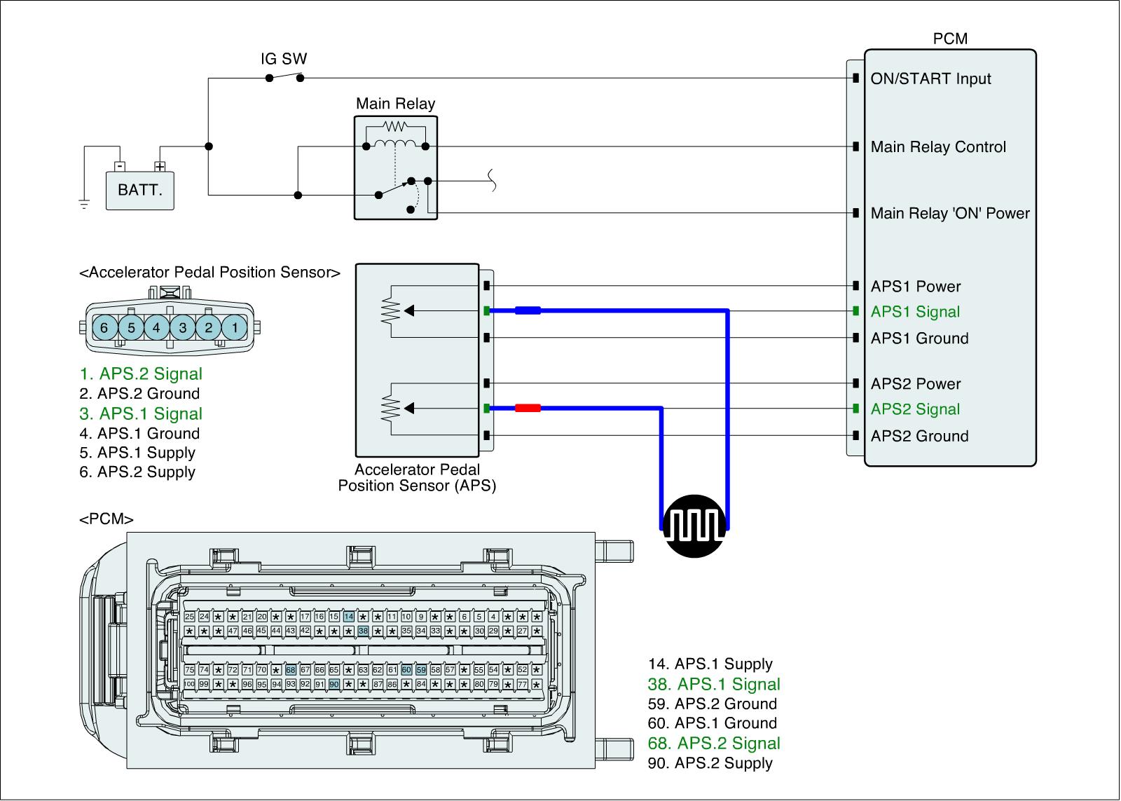 3. Measure signal waveform of APS by pressing and depressing accelerator pedal.