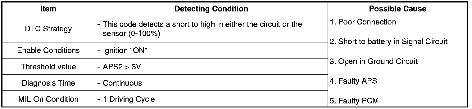Checking output signals from APS 2 under detecting condition, if output signals are above the threshold, PCM sets P2128.