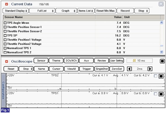 Fig.1) Normal data of TPS1 & TPS2 with no accel pedal depressed under IG ON condition