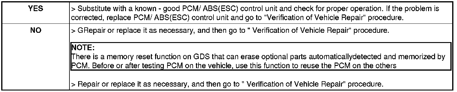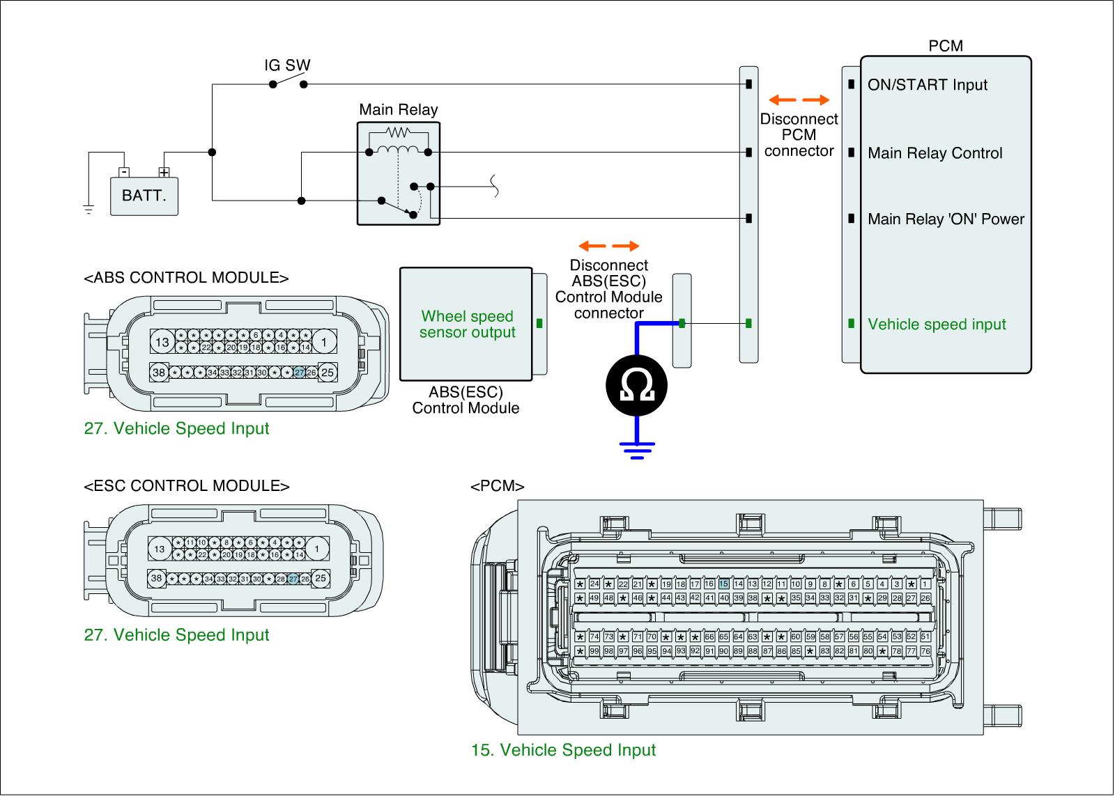 1. IG "OFF" and disconnect PCM connector and ABS (ESC) control module connector.