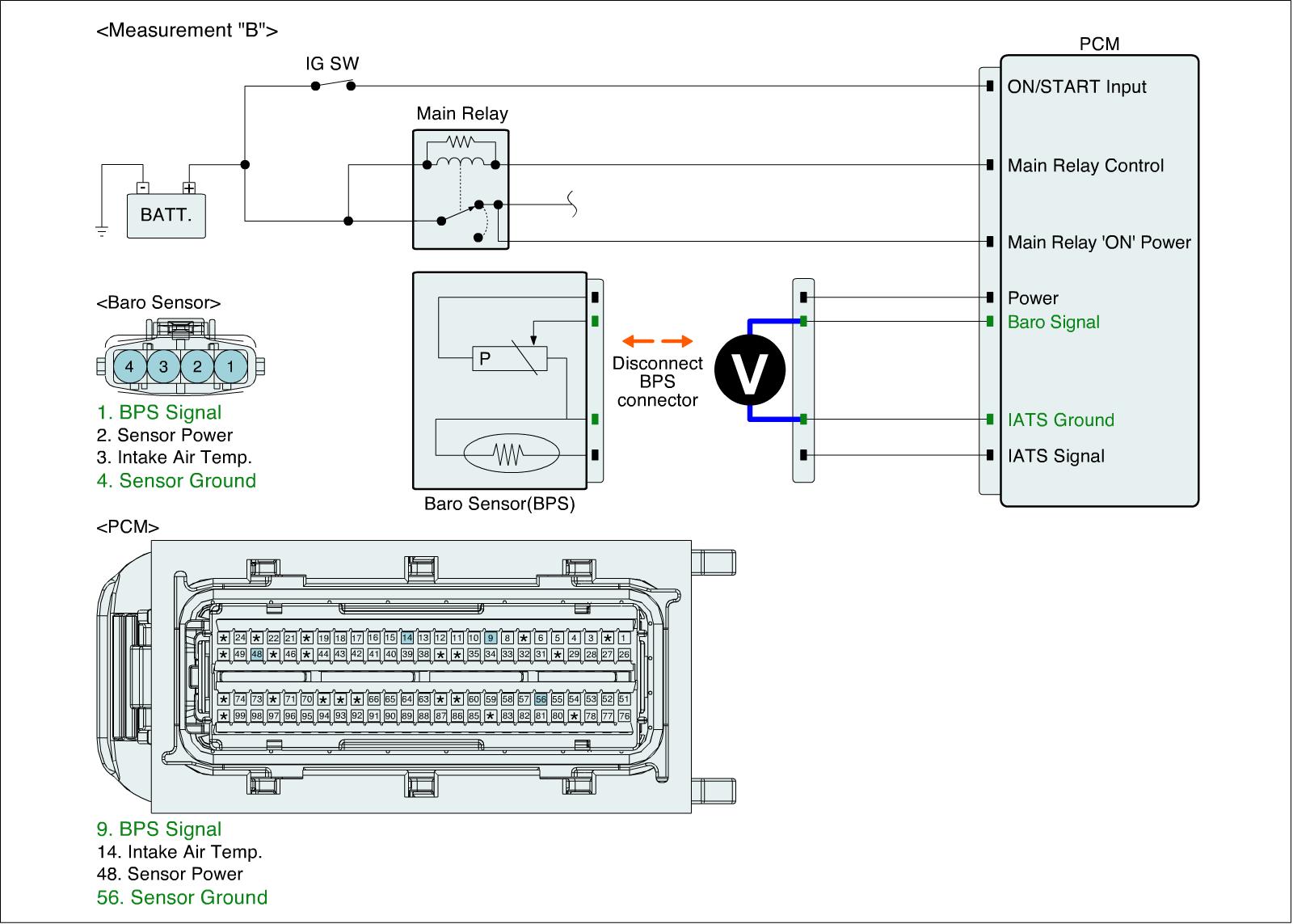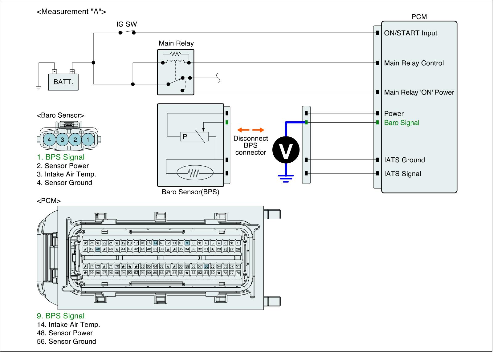 3. Measure voltage between signal and ground terminals of BPS harness connector (Measurement "B")