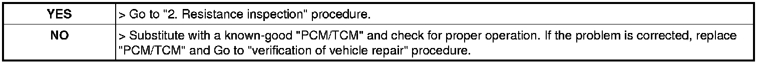 2. Measure resistance between CAN high terminal and CAN low terminal of PCM/TCM harness connector.