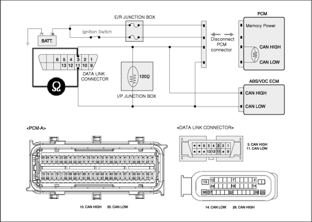 Specification : Approx. 120 Ohms ± 10 Ohms (Disconnect PCM connector)