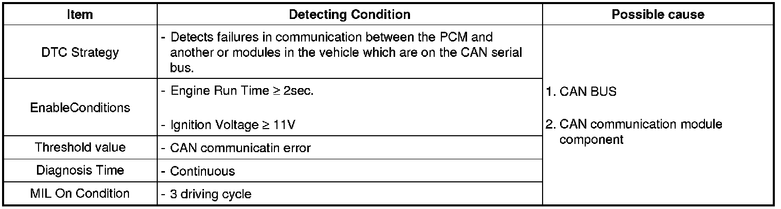 Checking CAN communication, under detecting condition, if an error within the detecting condition is detected for more than 1.5 sec., PCM sets U0001.