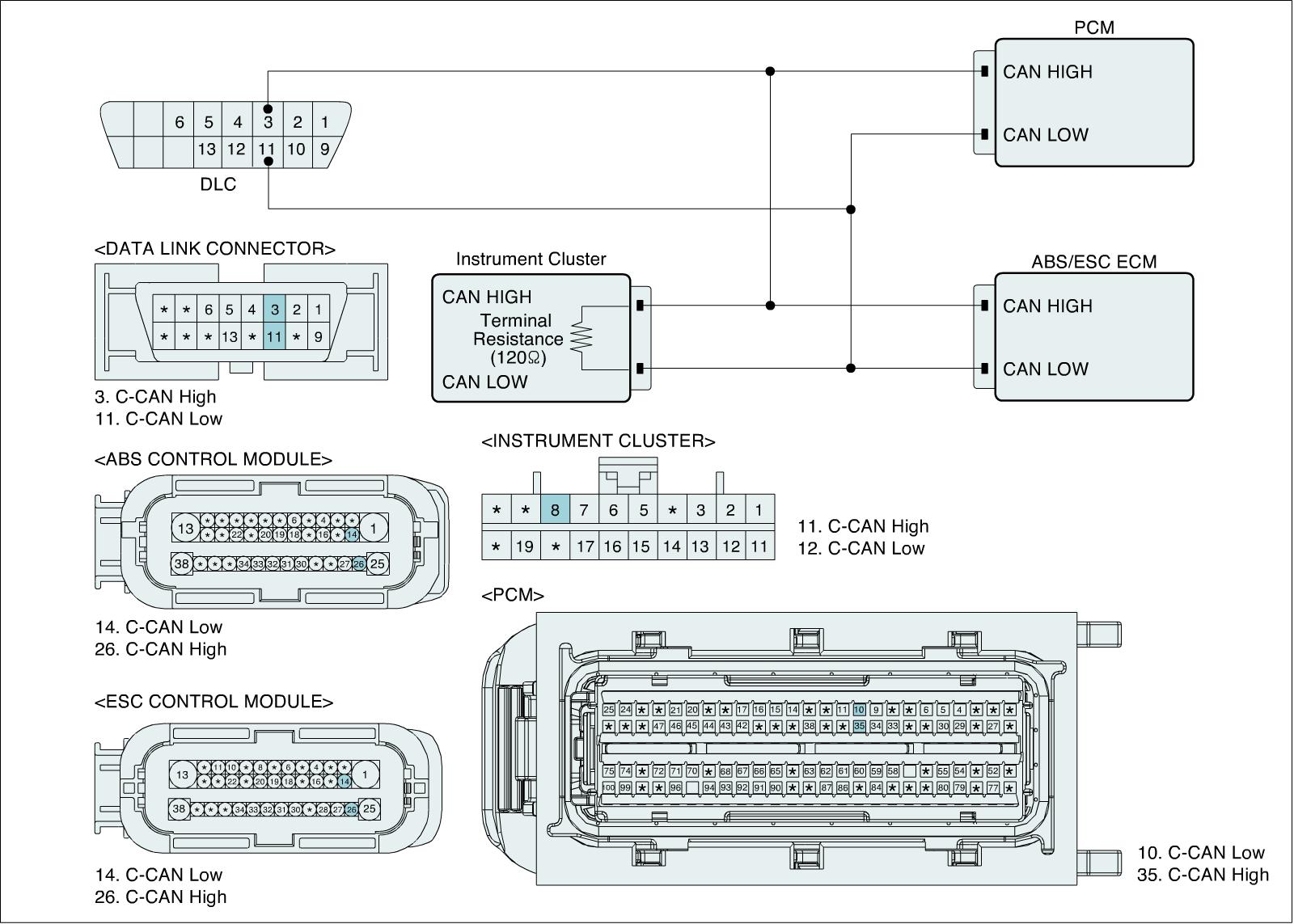Several control units are applied to electronically controlled vehicles. These units perform each control with informations from various sensors. Thus, sharing signal information from sensors is needed, so CAN communication type whose communication speed is high and insensitive to electrical noise by spark generation is adopted to controlling power-train (ECM, TCM, ESP ECM, ABS ECM) As sharing signals of engine speed, APS, gear shifting, torque reduction in ESP and various modules, active control is performed.