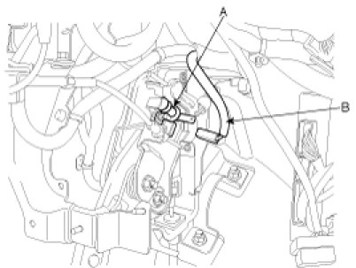 1. Remove the floor console and the connector (B) from the switch (A).