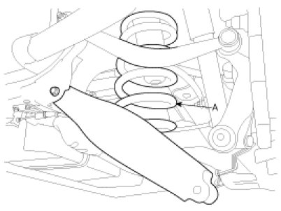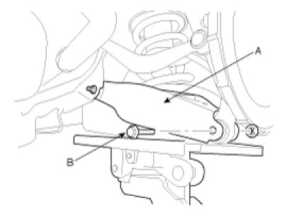 3. Support lower part of the lower arm (A) using a jack and remove the bolt & nut (B).