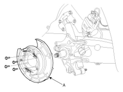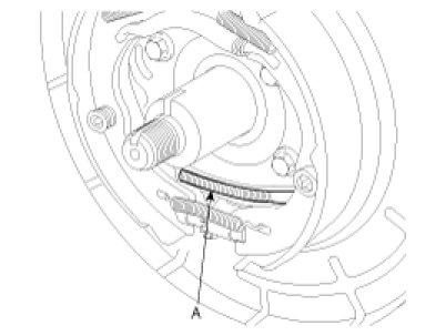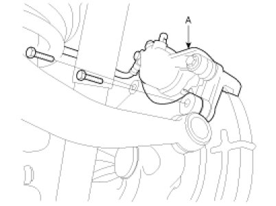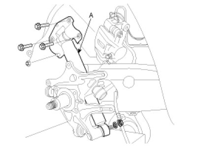 6. Remove the rear brake caliper assembly (A) from the carrier assembly and suspend it with wire.