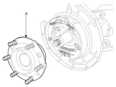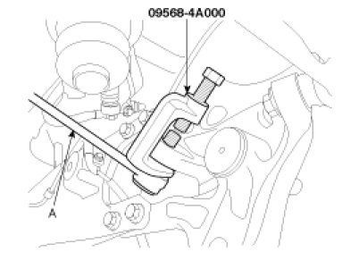 15. After loosening the castle nut and split pin, disconnect the assist arm (A) from the carrier assembly using a SST (09568-4A000).